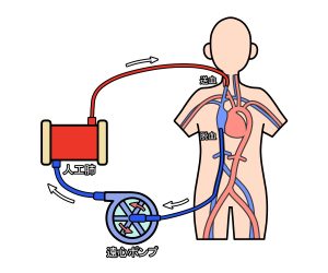 劇症型心筋炎の場合は、強心剤の点滴や人工呼吸器を使用しても全身状態が維持できなくなり、経皮的心肺補助装置(PCPS:コロナ禍でエクモとして広く知られるようになりました)を装着し、心臓機能の回復を待つ形になります。